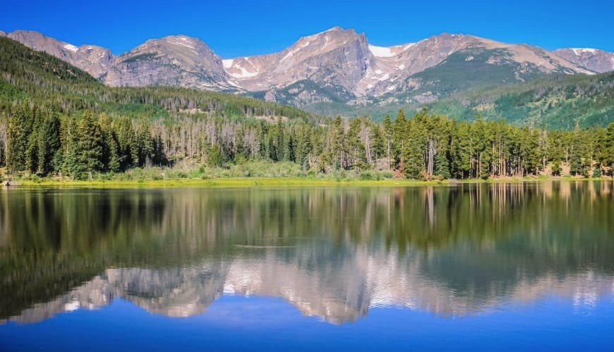 | Of all the spectacular Western destinations, Rocky Mountain National Park is the closest to the Ohio Valley and the South, Midwest and East. It is an easy two day drive out I-64 and I-70, with one overnight stop each way at the Lawrence (Kansas) KOA, the best commercial campground we've seen. Once you've build a skill and organizational background with trips to state parks or local national parks like Cumberland Gap, the Smokies or Red River Gorge, Rocky Mountain is a natural next step. It takes you into the high country, up on the Continental Divide. Especially if you add the Indian Peaks Wilderness to the south, Roosevelt National Forest to the east, Arapaho National Forest to the west, and Never Summer Wilderness to the northwest, Rocky Mountain National Park is one of the three greatest hiking and backpacking meccas in North America and maybe the world. Other places have good trails. But almost nowhere else has the sheer number and variety of trails. | ![]() |