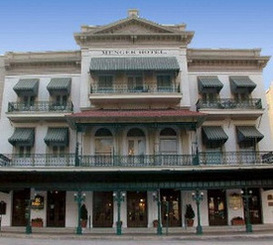 | However, if the Crockett is full, our second recommendation is the Menger Hotel, just across the street. The Menger was built even before the Crockett and has a history just as colorful. It went up in 1859, just 23 years after the Battle of the Alamo. The Menger today offers five stories, 316 rooms, and a fine restaurant. The Menger's most colorful character was Teddy Roosevelt, who spent two weeks here in 1898 recruiting his famous Rough Riders to fight in Cuba in the Spanish American War. They were the ones who made the famous charge up San Juan Hill. But Sidney Lanier, Babe Ruth, Robert E. Lee, Mae West, Ulysses Grant, Sam Houston, William McKinley, Howard Taft, Dwight Eisenhower, and a long list of movie stars, athletes and tycoons stayed here. The Victorian Lobby of the Menger is one of the most photographed scenes in San Antonio. The bar is famous. Manager Hermann Kampmann sent the architect to England to study the House of Lords Pub. They imported booths, bevelled mirrors and the panelled ceiling of cherrywood from France, and the decorated glass cabinets from England. The bar cost $60,000 to build, quite an expense in the 1800s. In 1876, barbed wire was first demonstated to the public here, and the first orders taken for its sale. Richard King, founder of the million acre King Ranch and one of the richest men in Texas history, feuded with the cattlemen of the Texas Land & Cattle Company so stayed here when in town, and died here in 1885. | ![]() |