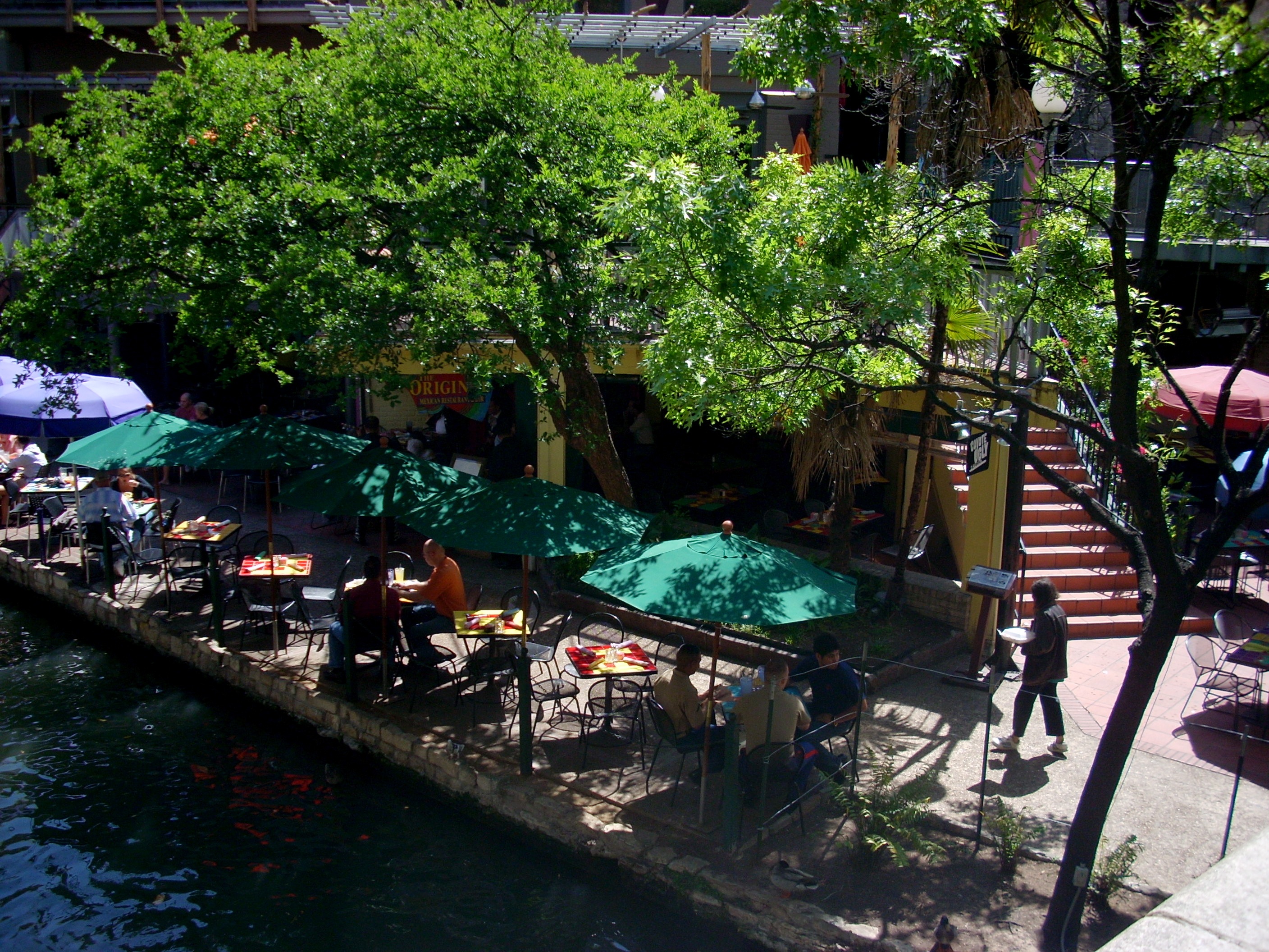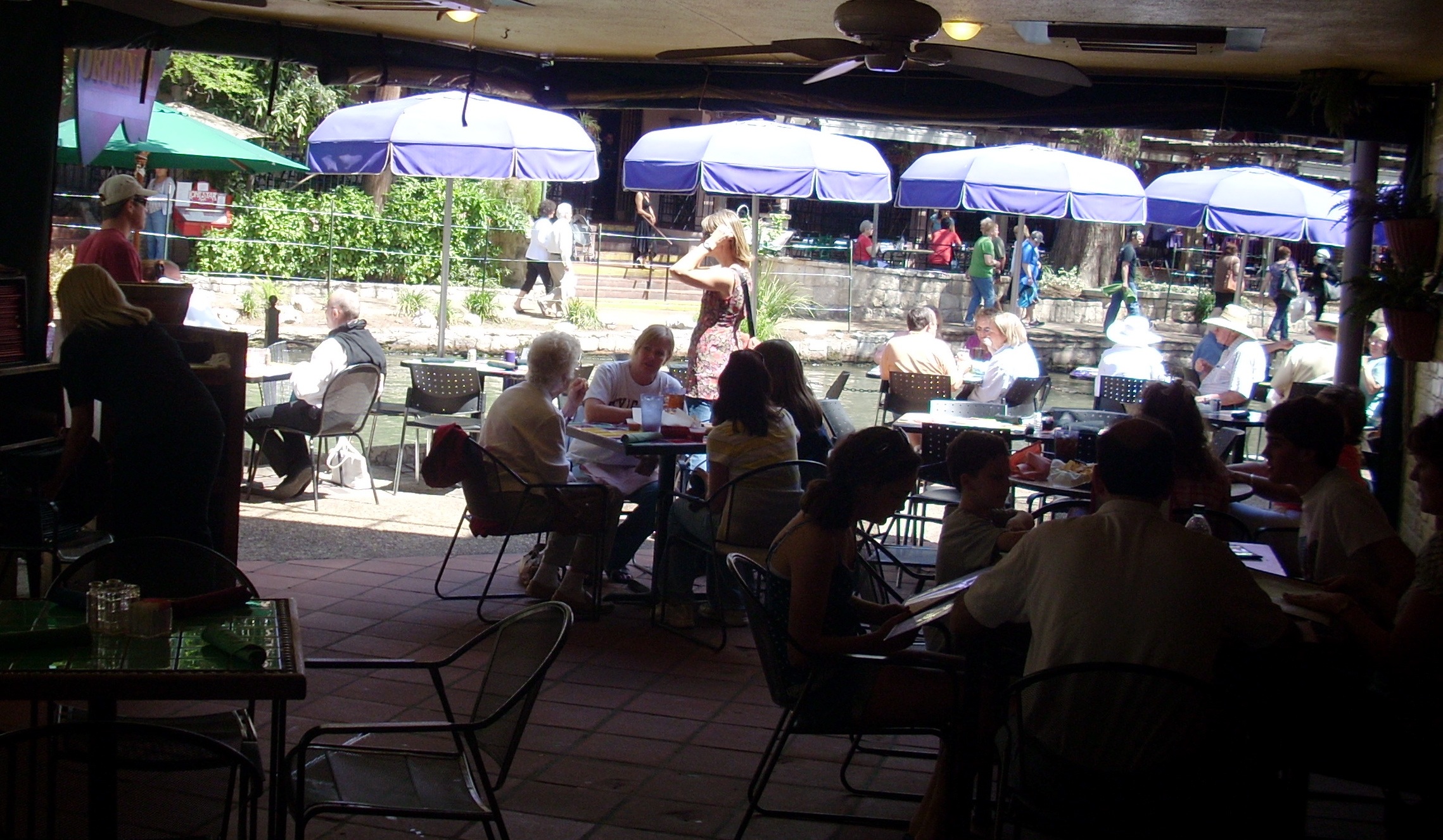 It's not on any Top 10 restaurant lists. But you should at least try to eat lunch at The Original for historic reasons. Because this was the first Mexican restaurant in the United States. When it opened, it did not face the Riverwalk. Like most businesses in downtown San Antonio, it faced the street, ignored the river most of the year, and during the annual floods considered it a nuisance. The Original served customers at two street locations. Only after the Riverewalk was artfully landscaped and channeled did businesses clean out their basements and open doors and patios to the water. Only after Casa Rio's proved that a Mexican restaurant could prosper from Riverwalk customers did The Original decide to get into the action. However, it's not a bad place to stop for lunch. They have a heavily shaded location, with one of the most scenic arched bridges only a few steps away (the photo upper right was taken looking back at the restaurant from the bridge). The Original has a traditional Mariachi band roaming around serenading diners. It was founded by the Farnsworth family across the river on LaSoya Street in 1899. They basically created the definition of Tex-Mex commercial food. In 1960 the Farnsworths retired from restauranting and the new owners moved the business over to its present location. Two years later they opened their lower level to face the river. Their top menu items are the Fajitas and Quesadillas, and their Cheesecake is very competitive. . |