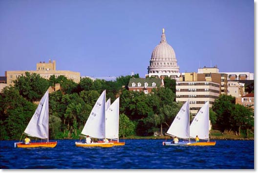 | Once in Wisconsin, the traffic thins out and driving gets easier. If you have any beer conneisseurs in your vehicle, you might stop at Janesville, which has a brewery producing four of the nation's best beers. At Madison you can visit the University of Wisconsin, one of the nation's most beautiful campuses and the alma mater of John Muir, one of outdoor lovers' Holy Trinity, along with Harvard products Henry David Thoreau and Theodore Roosevelt. From Madison you take I-90 northwest 40 minutes to the Dells. If you left Lexington at 9 am you should be arriving at the Dells by 7 pm. At the Dells you can take the first exit and drive through almost all of the town, or the fourth exit and drive straight to the Indian Trail Motel. (Go through the main intersection with Mexicali Rose on your right, cross the bridge, climb the hill and look for the Indian Trail on your left at the end of the business district.) Remember you've crossed a time line so the Dells is an hour earlier than whatever your watch says. | |