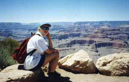 Everybody needs to backpack The Grand Canyon. The place is just amazing. We live in this age where every thing is so overhyped the reality is always a disappointment. Not The Canyon. People can't overhype it because they can't capture it. Not in words or on film. We'd all seen hundreds of photos and paintings and watched several movies of it, and when we got there it just sucked our breath away. We had experiences there we'll never have until we return. We started by hiking the South Rim Trail, an all day adventure of its own that ranks as one of the world's top 10 day trips. We urge everyone to begin your visit by doing this. You need time to adjust to the altitude, heat, light, dryness, and general weirdness.We looked down on the top of thunderstorms, standing there in bright sunlight watching lightning flashing out from below black clouds way below us. We saw planes flying way down there, looking like little toys, too far away to be heard. |