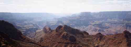 | So where do you start? We seriously urge you to make The Grand Canyon an Amtrak trip. This is one of the three greatest Amtrak trips in America (along with Glacier and Cascades). And your vehicle is a liability here. On our last trip, we could still bring the van into the park, but the traffic was gridlocked and there was no place to park. They are in the process of outlawing vehicles in the park; you'll have to park at the entrance and take an electric tram in. So just come in by train. Have someone drive you to the nearest Amtrak station, spend two days on the train, and step off at the edge of The Canyon. Actually, it's more complicated. You'll get off Amtrak at Williams, Az.,and spend the night. | ![]() |