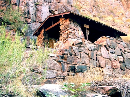 A second great day hiking trail out of Indian Garden is the hike down Bright Angel Trail to River House. This is just a rest and composting toilet stop, located where the trail finally reaches the river for the first time. But the hike down is magnificent. On a typical hot day, it will take about 90 minutes down and two to three hours back. The highlight of the hike will be the Devil's Corkscrew, a twisting, winding, spiralling series of steps through the geological formation called the Vishnu Schist. You can reach out and touch some of the oldest rocks on Earth, rocks which have been here since the very creation of the planet. |