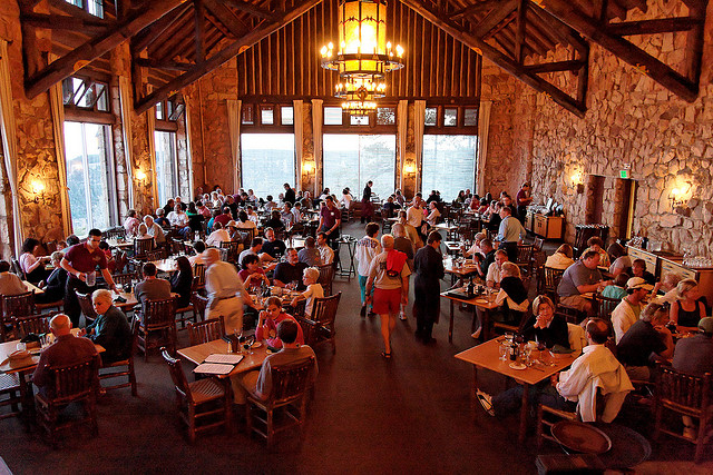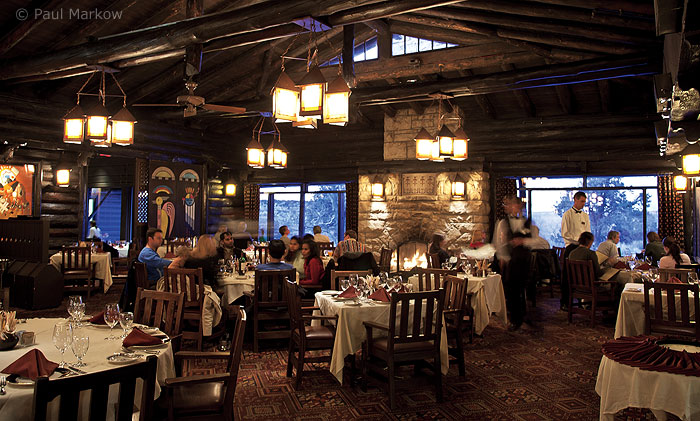 For all of the crowds at the South Rim, it's at the North Rim where the Grand Canyon Lodge is located and where many people think the best restaurant in the park is. And it is a magnificent restaurant. Its windows are right on the edge and the views are breathtaking. The theme is the 1930s. At breakfast and lunch you can order off the menu or take advantage of the bountiful buffet. At breakfast, the Multigrain Pancakes are unique and most people think are delicious. They offer a TiYo Tomato Salad (mozzarella, basil and a mountain of tomato slices) which is unlike anything you've ever seen. Tomato lovers speak of it reverently. Signature items include Utah Trout, El Grande Ravioli (made with five cheeses, baby spinach and marinara), Miners Meatloaf and Buffalo Flank Steak. For the timid there's Chicken, Pasta, Salmon, Pork Chops, various Steaks and a Soup of the Day. There's also a Cookout run from this restaurant, which features a trip 60 minutes down the trail and dinner in the woods at a spectacular overlook. Realize that the drive from the South Rim to the North Rim takes basically all day. You do get to stop at Lees Ferry and the Vermillion Cliffs. Grand Canyon Lodge is not a Xanterra property. Forever Resorts runs the North Rim operations. |