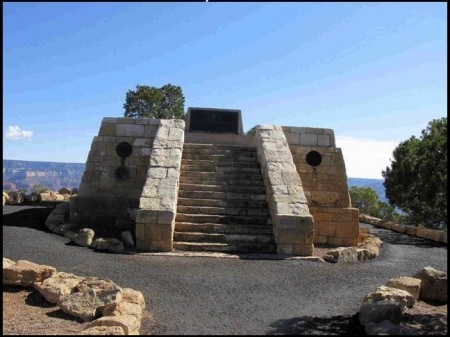 This is the John Wesley Powell Monument. Powell was a Civil War veteran who came West and became the first man to ever successfully navigate the Colorado River all the way through the Grand Canyon. His exploration of the Colorado River from its source in Wyoming to its mouth in California is one of the great adventures of the American West. |