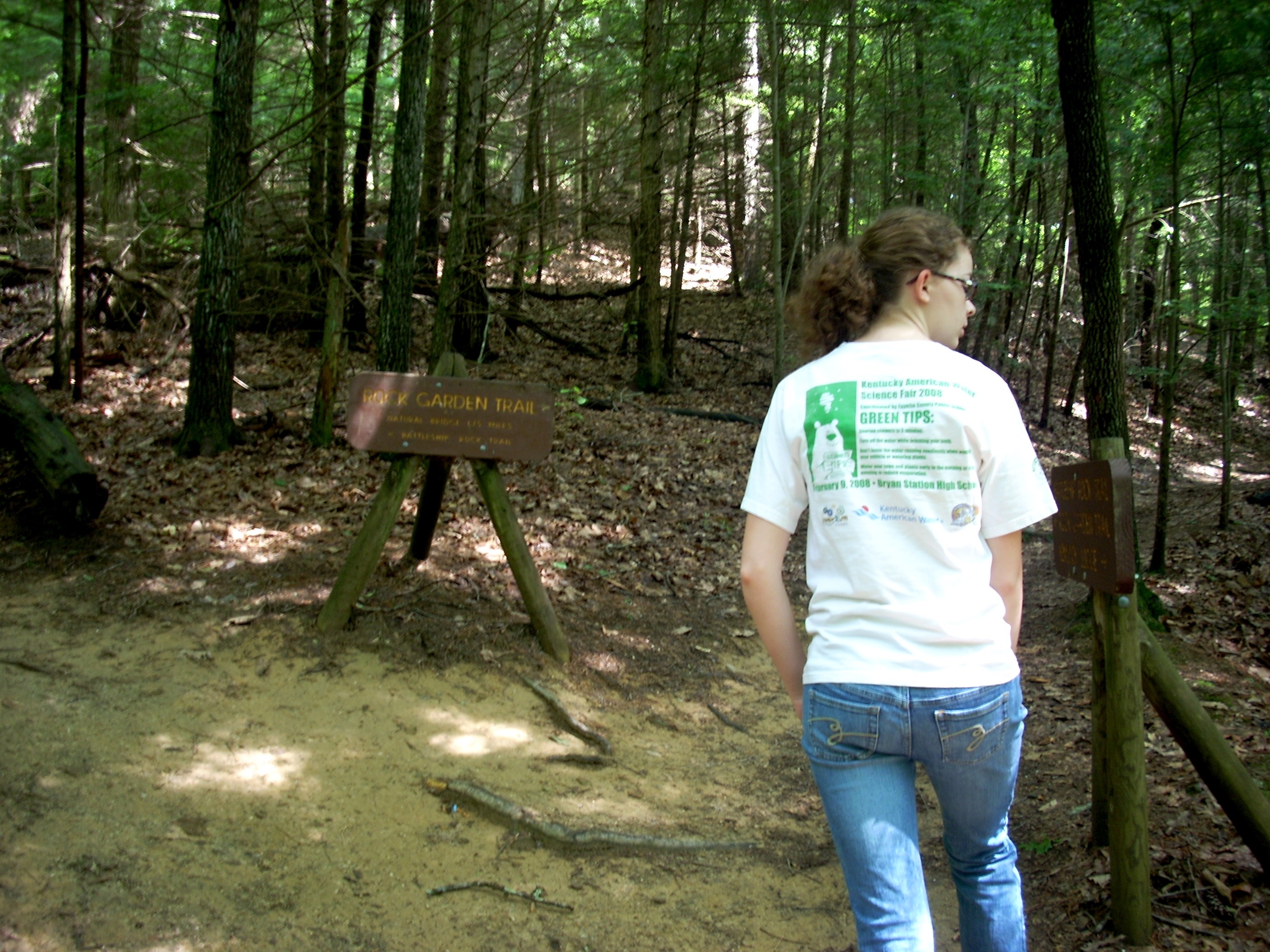 Suddenly you round the far Western point of the ridge and start climbing. As you climb and round the point, you find yourself in a much drier and sunnier zone. The Maples, Oaks and Hickories become far fewer and Rhododendrons and Pines dominate. Salamanders will be replaced by Fence Lizards, the Kentucky cousin of the Texas Horned Frog. You'll see them scampering on trees and rocks, but they're quick and clever and as you walk the trail they'll circle the tree to keep out of sight. Watch ahead of you to see them basking in patches of sunlight.