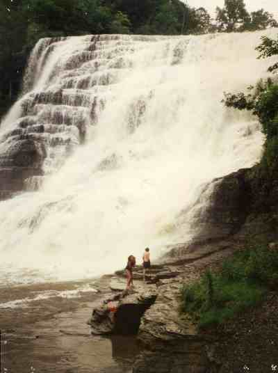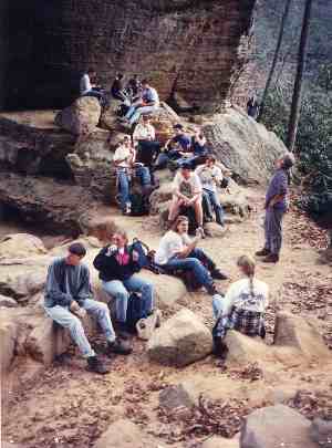 The final item you need to consider is Boots. We're familiar with the lightweight fabric boots and we've owned several pair. But there's a lot of water flowing in Kentucky. You'll be hiking along rivers, streams, waterfalls, lakes, ponds, bogs, springs, seeps and wetlands. Fabric boots don't keep your feet dry and don't last very long when they're always getting wet. We prefer good leather boots. We clean and polish them between trips and find a pair lasts several years. They keep our feet dry and give us more support on the rocky climbs. The photo at left is taken in the Big South Fork. Remember we're a Kentucky site with the majority of our users in Kentucky. So we cover Kentucky hiking trails in this section. However, the second line of the menu bar above offers the best day hiking elsewhere in the nation. If you love a good day hike but prefer sleeping in a cabin or lodge to camping out, those are the national parks to visit. |