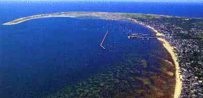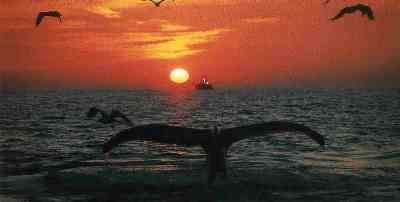 The Provincetown Ferry makes daily runs all Summer across the bay from Plymouth. It docks for 4 hours while you explore the area, then brings you back. It makes a fine day. You enjoy a beautiful cruise across the open water. You really get a bonus, because you are crossing the Southern edge of the Stellewagen Banks, the world's greatest whaling grounds. You will see numerous whales, and you may see some of them up very close. You will also see fishing boats, sailboats, a dozen kinds of seabirds, sea turtles, seals, porpoises, and dolphins. |