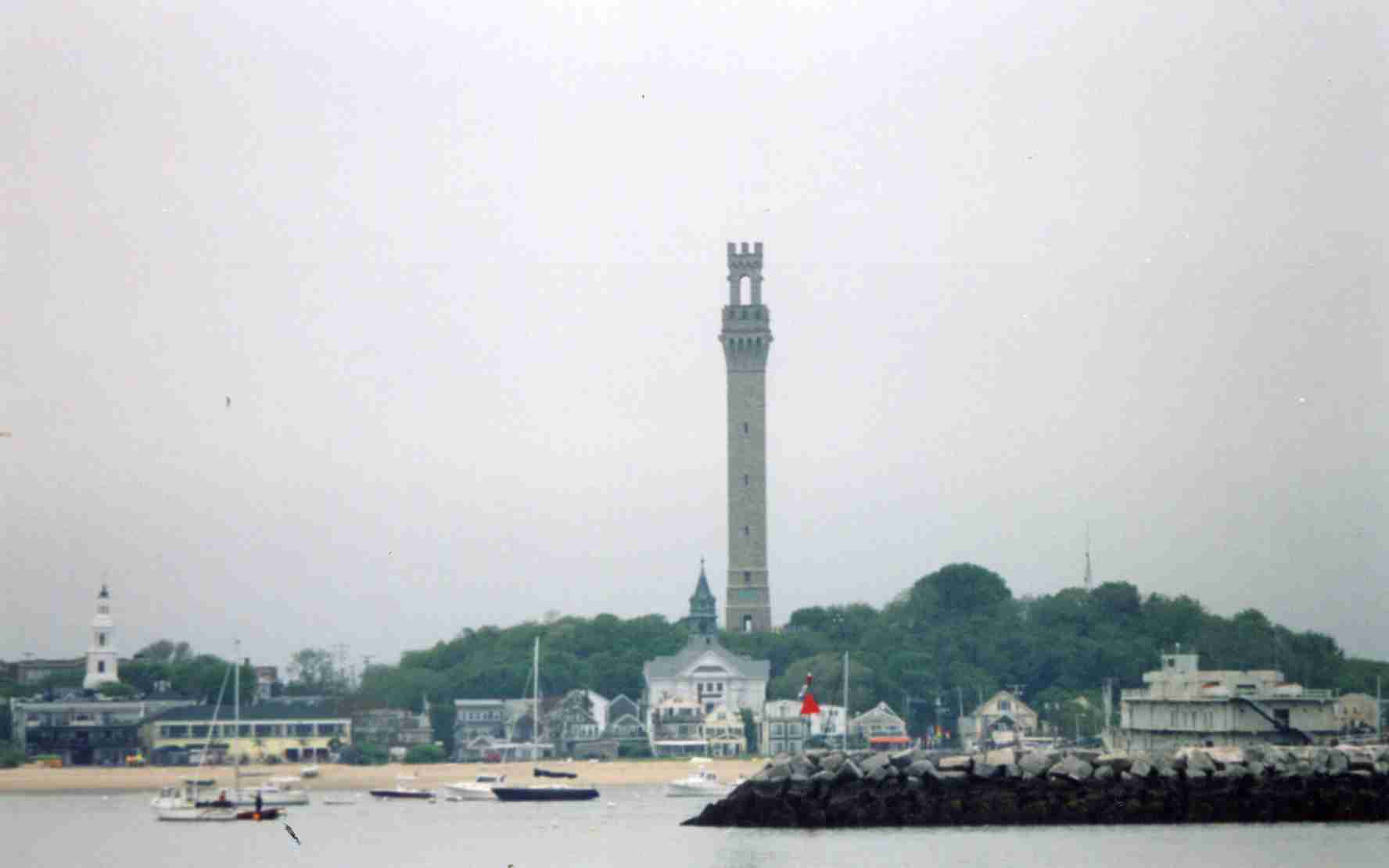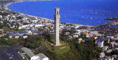 Once docked, you need to be very efficient, because those four hours go by quickly. You want to see four things. The first of these is the tower rising above the town, the dominant feature of the landscape. This is the Pilgrim Monument, a huge edifice only two blocks from the dock. There is also a museum at the base which is worth your time. The climb to the top takes a while, but the view is spectacular, with sweeping views of Cape Cod and the surrounding ocean. On a clear day you can see Boston. Do take a jacket, however, because the wind whips aggressively across the top of the tower and will chill you in minutes. While you're up there, look to the east and locate Race Beach. Visualize how the Mayflower drifted there from the Southeast. They first worked their way down the southern side of The Cape, opposite Provincetown, then decided there was no break, and came back around the tip to find Provincetown Harbor. |