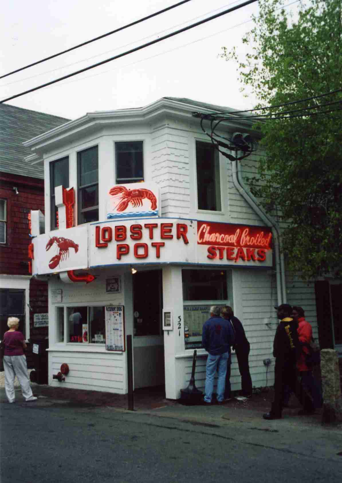After visiting Race Beach, you want to take the shuttle back downtown and get off at the main intersection, with the dock to your right and the Pilgrim Monument to your left. After you get off the bus, a quick look around will reveal the Lobster Pot on the opposite corner. This is your required lunchtime stop. There are many other restaurants in downtown Provincetown, but you have to eat at the Lobster Pot. With the demise of The 1620, this is the finest seafood restaurant in America. Don't let the tiny corner entrance fool you. You walk in through this narrow front, pass through the kitchen, and then the building opens out to a very large main dining room and a second large facility upstairs, both with large picture windows looking out on the bay. Provincetown, you will learn, was founded by Portugese fishermen. Much of the population and culture still reflects that. The menu of the Lobster Pot certainly does. It has many Portugese dishes. In fact, this restaurant introduced Paeia to the American diet. It's one of our favorite dishes, we've had it all over the country, and we've still never tasted it prepared as well as they do it here. We encourage you to try it for lunch. But you certainly have many tempting alternatives. The chowder, according to which critic you read, is either the best in the country or among the top five. Whatever their fish of the day is would be a good choice. Obviously, their specialty is lobster. If you think that might be a bit much for lunch, you might try one of the derivative items, like lobster roll, lobster pie or lobster salad. If you're bringing a youth group, you should stop on your way off the ferry to the Pilgrim Monument and let them know the size of your group and what time you'll be returning from Race Beach. For couples, check the wine list. They have a better selection of Portugese and Spanish wines than you find in most American restaurants. |