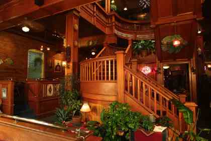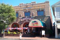| If seafood is not a priority, the restaurant we most recommend is Sam Diego's. Eating there is a unique experience. It is on Main Street, "a block from the rock," as the menu proclaims. Sam's is a converted firehouse, the old Station One. The building itself is an architectural display, shown by the photo top right. There are multiple levels with winding staircases, plenty of polished wood, brass trim, rich tapestries and other hangings. Sam's has a great menu which at its core is Southwestern. Yes, out of place in Plymouth, but innovative and delicious. They serve Texas Tea in glass cowboy boots. The children's menu is excellent with all items under $5. Desserts are obscene. People come here just for Cheesecake Chimichanga, which despite its fame is only $4. There are huge salads, cod grilled or baked, shrimp sauteed in tequila, kabob, chicken fixed a dozen ways, steaks, and Mexican Mud Pie. Kids love the pool tables in the back. Priced very reasonably. Go early to avoid the crowds. 508-747-0048. | ![]() |