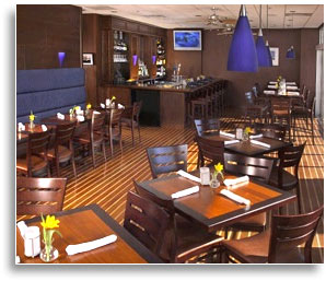 Our favorite place to eat lunch in Salem is Captain's. Right on the edge of Pickering Wharf, its huge windows look out over the harbor and down on the Friendship anchored at the dock. It is a great mid day stop. Where else can you get Swordfish Steak for $8, Scallops for $7, Grilled Tuna for $9, or Salmon for $7? And these are not low budget fast food. These are upscale restaurant entrees. The kids will love the shrimp pizza. If you come for dinner, the choices get more sophisticated. There's a lobster risotto (lobster, cheese, chives and citrus) for $14. |