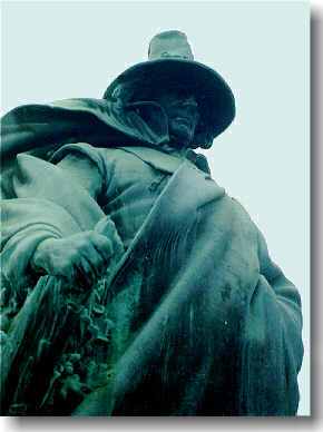 We define the Salem Waterfront rather loosely, extending it to mean everything from The Common (the downtown square) to the end of Pickering Wharf. It is the heart of your Salem visit. We give it one full day, including meals. It is actually a pretty demanding day, because you'll be on your feet continuously except for lunch, dinner and a few rest stops. The Waterfront, then, is actually the Salem Historical District for the period of Salem's great prosperity, after its citizens had risen above the crude shelters of Old Salem Village. People today might critisize the Puritan focus on unrelenting hard work, but the results cannot be denied : they advanced from dirt floors to the richest town in the world in less than a century. Much of this should be attributed to the vision, leadership and humility of one man : Roger Conant (above left). Conant's authority over his colony was erased by the King when he merged all Seven Crown Colonies into one Massachusetts Bay Colony and chose someone else to govern it. Yet Conant swallowed his pride and continued to lead the town of Salem until his death at 87, by which time he and his followers had achieved wealth beyond their wildest dreams, lived in America's classiest community, and did it without corruption or scandal. They just outworked the rest of the world. European stereotypes of "Yankee Ingenuity," "American Industriousness," and "The Land of Opportunity" mostly derived from Salem. |