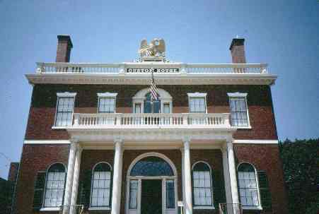The House of Seven Gables (above and left) is a must on your Salem visit. This magnificent structure was the first mansion in America and was built way back in 1663. Facing the harbor, with a beautiful garden and its own dock, it would be a fitting residence for a millionaire today. Author Nathaniel Hawthorne grew up down the street, inherited the house and lived there. It was the centerpiece of his novel, "The House of Seven Gables." It is a big place even by modern standards, and your tour will take over an hour. The rooms are filled with furniture made by a craftsman named Allen, silver crafted by a young silversmith named Revierossi (later to be shortened by son Paul to Revere), the white and blue porcelain brought back from China to replace pewter, and rugs brought back from Persia (now Turkey). In all, more than 2000 artifacts or furniture pieces from the 1700s and 1800s are on display, plus several hundred valuable paintings and sculptures. A long list of guests spent nights or weeks here who would later become famous in American history, commerce or literature. Tours cost $12 each or $9.50 if in a group of 10 or more. There are also a museum, store and snack bar in nearby buildings. |