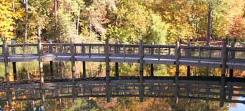We are huge fans of The Cascades. This is a 1950s motel behind the Visitor Center. It's not exactly 1700s, but it has its own charms. It sits in a 40 acre woodland. A miniature golf course winds through the trees, and there are outdoor shuffleboard and table tennis court facilities. You share a beautiful outdoor pool with The Woodlands, a more modern luxury hotel. Your reservation includes a very ample Continental Breakfast. The Cascades is a one floor building allowing you to park right in front of your room door. Windows look out onto woods and flower gardens. One appeal of The Cascades is it allows dogs. The rooms are rustic but beautiful with hardwood floors and wood trim. The location is ideal. You can park your car and leave it. You're steps away from the Visitor Center, with its stores, theatre and programs. You can ride the shuttle or walk the one mile well landscaped trail over to the historic district and various restaurants and shops. You're just across the lawn from Huzza's, a family restaurant with pizza for the kids and reasonably priced entrees for adults. A short drive around the Visitor Center plus a left turn puts you on the Colonial Parkway, where you're 15 minutes from Jamestown (turn right) or Yorktown (turn left). Williamsburg does not promote The Cascades because they don't have to; it has its own loyal visitor base who return every year and keep it filled most nights. So you have to ask about it. A typical double room is about $89. |
