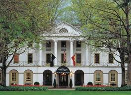 | If you want to go upscale, there's the magnificent Williamburg Inn, tastefully restored to its former glory. If you stay elsewhere, you still should come by and visit, because this is a great example of Virginia class and dignity. The Williamsburg Inn sits two blocks off the historic main street in the opposite direction from the Governor's Palace. The Inn was intended to replicate the plantation homes along the James River, so you'll enjoy marble bathrooms, English Regency furniture, poster beds and afternoon tea in the Terrace Room. The Regency Room is the kind of restaurant visiting dignitaries would have found suitable, with a British and French inspired menu. Most of the rooms have a single King or Queen sized bed plus comfortable seating, so this not a place for families or youth groups. Even if you don't stay here every year, it makes a great Special Occasion hotel. There's no hotel in America that better captures the aristocratic glory of Colonial Virginia. | ![]() |