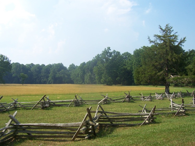 | This pasture is known as Surrender Field. It was where, on the morning of October 19th, Cornwallis lieutenants marched his troops out to meet Washington and his troops. One by one, the British troops marched past the Colonials and laid their rifles, with bayonets mounted, on the ground. Cornwallis himself did not appear; he claimed to be ill and remained in his tent. Instead, Brigadier General Charles O'Hara presented Cornwallis' sword to Washington. In the background, the British band played "A World Turned Upside Down." The British were in disbelief that after centuries of defeating powerful armies and navies from the Roman Empire, Spain, France, Holland, what would become Germany, and the Pirate Navy of the Barbary Coast, they had been defeated by "a rabble in arms consisting of farmers, blacksmiths, store clerks and fishermen, not even soldiers but part timers, who went hunting for rabbit and deer with the same guns they carried into battle." Washington took 8000 prisoners but made sure they were treated humanely until he could trade them back to the British for captured Americans at the Treaty of Paris in 1783. | ![]() |