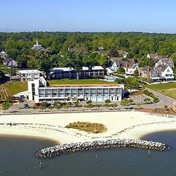 | Most people who visit Yorktown do so as part of a several day visit to Williamsburg, and stay at a Williamsburg hotel. However, you can stay in the historic village of Yorktown, within walking distance of the British fortifications, at the Duke of York Hotel.This is not a modern five star facility. It's a 1970s style Mom & Pop place. But the rooms are clean, the staff is efficient and welcoming, and there are some surprises, like a coffeemaker, fridge and microwave. You're right on a beautiful small beach, as shown at right. Within a few blocks are a dozen historic sites, such as the house where Washington and Cornwallis negotiated the Surrender. Also within a few blocks are several outstanding restaurants, specializing in seafood and colonial era dishes. There's a small outdoor pool and an on site restaurant which serves excellennt breakfasts. If you request a third floor waterfront balcony room, you can enjoy beautiful sunsets over the York River, then leave the drapes open and wake up next morning to the sun rising over Chesapeake Bay. A block down the street is the Yorktown Wharf, where you can board a fishing charter or sightseeing cruise. And, in a town that has been here since 1690, there are antique shops to browse. Because of the beach, fishing and battlefield, the place stays full in the Summer, so you need to make reservations well ahead of time. Rooms about $120 a night. | ![]() |