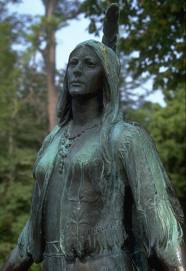 | Like the other "original" colonies (Roanoke, Plimoth and Salem), Jamestown took on a mythical status. Central to the myth handed down over the centuries is the story of Pocahantas. The famous 1995 Walt Disney animated feature influences the thinking of most Americans. Like most myths, there is a foundation of Truth in this one. Pocahantas was the daughter of the chief, and befriended the English. When the village ran out of food by midwinter, she persuaded her father to send weekly supplies to keep the men alive until their ships arrived with more. The girl established relationships with John Smith and John Rolfe. During a time of disagreement, John Smith was captured and was about to be put to death when Pocahantas intervened and convinced her father to free him. Smith and the Chief resolved their disagreement and restored peace. All of this we know to be true. It is thoroughly documented. Where the modern myth departs from fact is in the supposed romance between Smith and Pocahantas. This romance never existed. The romance was between Pocahantas and John Rolfe. She eventually converted to Christianity and married Rolfe in a famous ceremony in the Jamestown Chapel administered by Reverend Thomas Hunt. Pocahantas returned with her husband to England, was quite popular there and was even the guest of the Queen. Another exaggeration of the myth was the curvaceous sexuality of Pocahantas when The Virginia Company first arrived. At that time she was in early adolescence and would not have been so alluring. Several years later, by the time she married and accompanied Rolfe to England, she apparently had grown into a very attractive woman, but transposing that appearance backward to when she was only 14 is inaccurate. | ![]() |