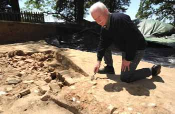 The original Jamestown Fort was a large triangular structure. At its three points were built gun platforms to defend against attack from either native Algonquin tribes or the Spanish Armada. Along the interior walls were built administrative headquarters, stores, and other community buildings. Inside that, at the heart of the community, were the homes. Shown here is Bill Kelso of the Jamestown Rediscovery Project. Over one million artifacts have been uncovered, one of the greatest historical collections in history. It had long been feared that over 400 years most or all of this treasure had been eroded and washed down the river, since the water laps at the edge of Jamestown. But we now know none of it has been lost. |