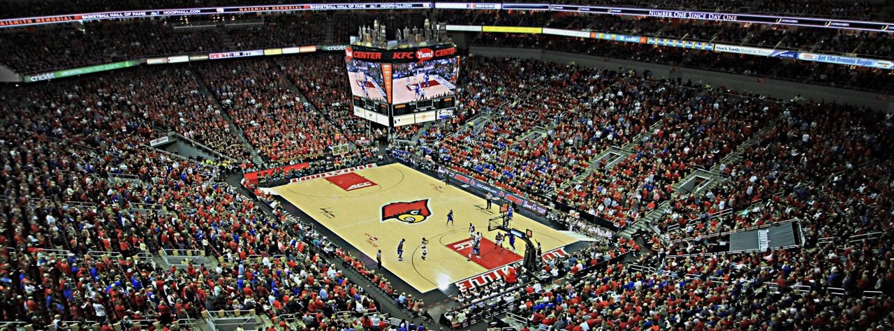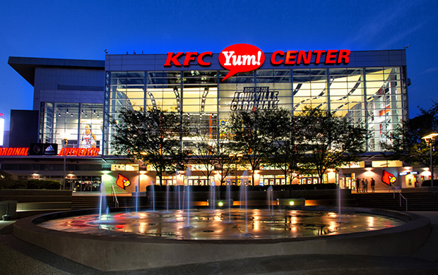 The KFC Yum Center is Louisville's downtown multi-purpose event center. Adjacent to the riverfront, it is located on Main Street between 2nd and 3rd Streets and opened on October 10, 2010. The arena is part of a $450 million project that includes a 975-car parking structure and floodwall. The University of Louisville basketball teams are the primary tenants, and the NCAA uses it for regional tournaments in March. With 22,090 seats for basketball, it is the largest arena in the United States designed primarily for basketball and second largest used for basketball, behind the Syracuse Carrier Dome. The arena's current game attendance record is 22,815, set March 9, 2013, against Notre Dame. Metallica performed a concert here in March 9, 2019 before 23,085. |