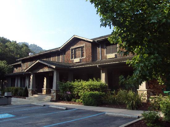 Our recommendation for lodging is Nantahala Village Resort, 1-800-438-1507, so called because it includes not only the lodge shown at left, but also cabins, treehouses, and other options. The best restaurant in the area, Thirteen Moons, is here. After a day on the river, you can enjoy Grouper, Salmon, Trout, Tuna, Crab or Sea Bass, or one of their excellent steaks. Sides include Horseradish Potatoes, Lemon Jasmine Rice, and Cheddar Grits. Nantahala Village also offers horseback riding, hiking, and a great spa. Nantahala Village was established in 1949 and was the most famous lodge and restaurant in North Carolina until it burned to the ground in 1997. It has been rebuilt, keeping the historical feel but adding modern touches. It retains the high location above the Nantahala Gorge with views in all directions. Come during the offseason (Spring or Fall) and rent a Fireplace or Loft Room in the Lodge for $100 a night. Both have hot tubs, and for families the Loft room has a special level for kids. We've kept youth groups here on many occasions, but it's also a romantic spot for couples. We know families who come here for their two week vacations and do something different every day. |
