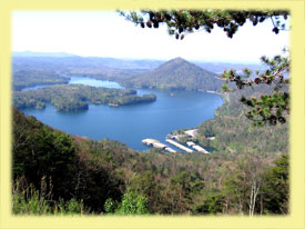 However, if you prefer to be right on the water where the river empties into the lake, there's the Ocoee Inn, 1-800-272-7238. You can rent either motel rooms or cabins. A four person cabin rents for $105 to $125 a night. The larger cabins hold 8-12 and would be suitable for a youth group. You might rent two adjacent larger cabins for a large group, or just rent a block of rooms at the motel. In addition to the rafting, you can bring or rent canoes and fish on the lake. The Ocoee Inn is 1940s rustic, but the lake is beautiful. |