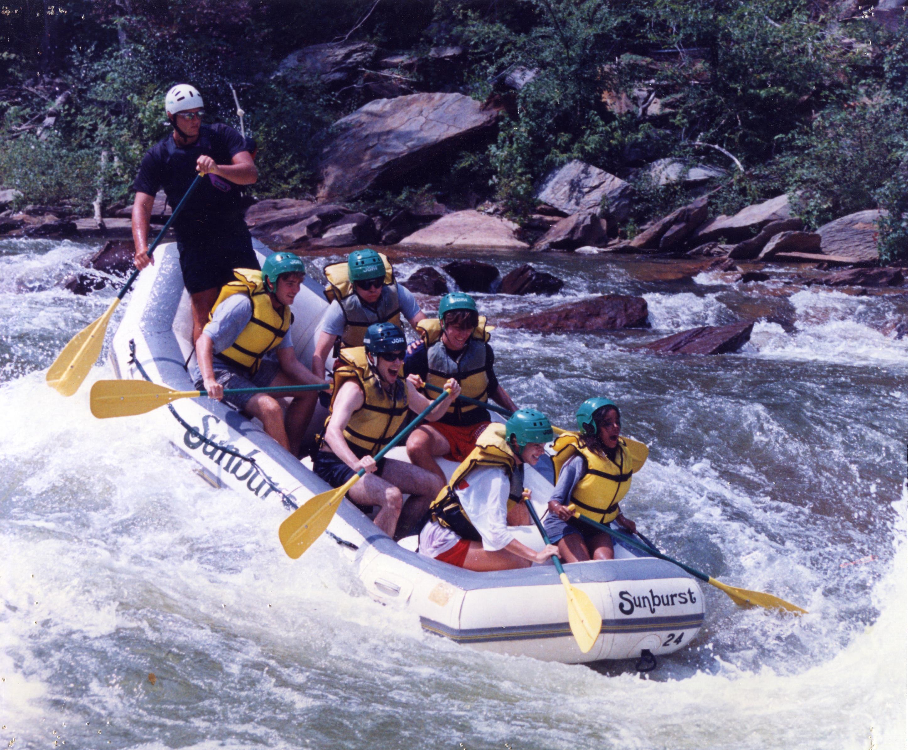A dozen rafting companies operate on the Ocoee. Having tried them all, we recommend Sunburst Adventures, 1-800-247-8388 (www.sunburst rafting.com). They were the first company to raft the Ocoee, back in 1976, and for several years they were all alone. When they started, there was only the Middle Section. The Upper didn't open until 1996. Truth is, today all the companies have about the same equipment. We like Sunburst because of their facilities and professionalism, especially on the part of their guides. We've brought a lot of youth groups down here over a 30 year period and we've observed guides dealing with them. We think the Sunburst guides are just better with kids, whether junior high or high school. |
