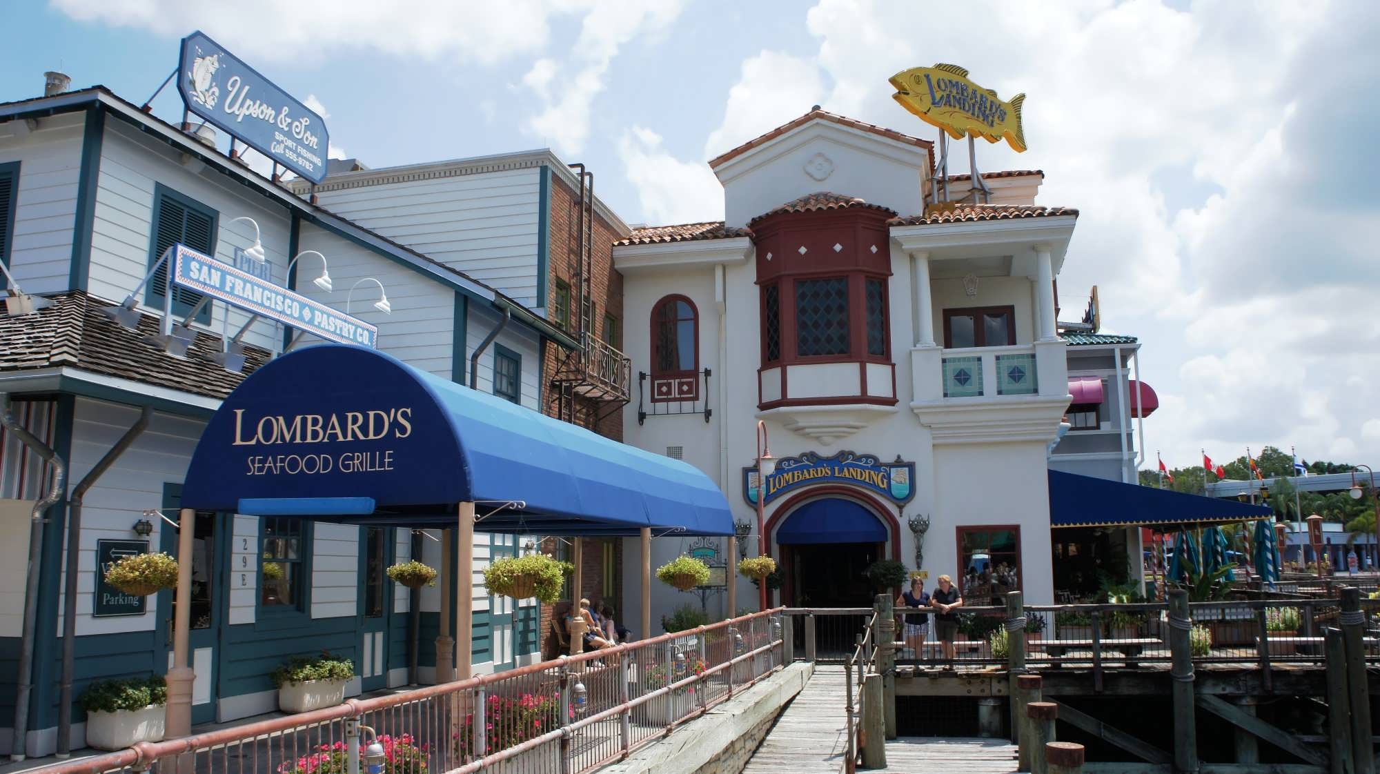For all the great theming at Mythos, Mel's and Broomsticks, the best true restaurant at Universal Studios / Islands of Adventure / CityWalk is Lombard's Seafood Grille. This would be a good restaurant anywhere, and their prices are surprisingly reasonable. Signature items are their Shrimp Cobb Salad, Lobster Bisque, Clam Chowder, Grilled Salmon, Crab Cakes and Key Lime Pie. The Crab Cakes are actually overstuffed, a rarity in the restaurant world since crabmeat is expensive. Whatever the Catch of the Day is, it's always good, but on days it's the Yellowfin Tuna, it's great. While this is a seafood restaurant, the Marinated Steak is outstanding. They also have a very good beer and wine selection at modest prices ($5 a glass). Try to get a window seat. The views out across the lake are beautiful. On good days, there's an outside deck, but it's often too hot and humid to enjoy it. This is a popular stop among Universal veterans, so reservations are critical. |