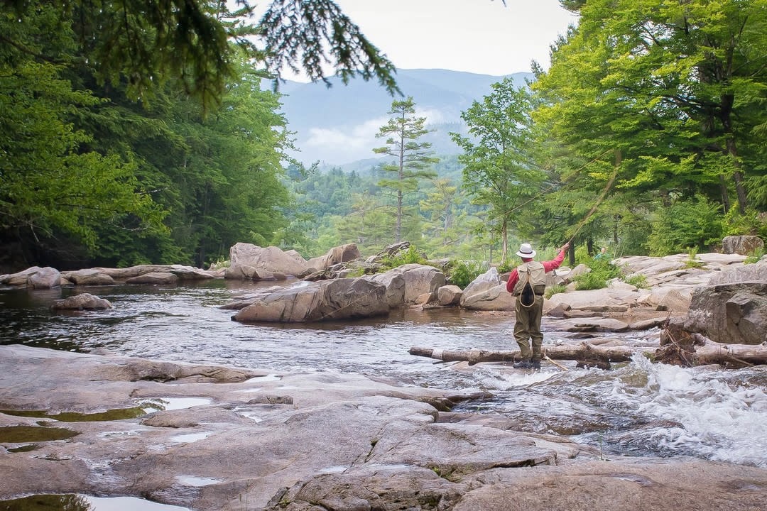 If you've never been Fly Fishing it might be wise to consider finding someone back home to give you casting lessons so you can practice in your bsckyard before you arrive in New Hampshire. This will avoid your spending a whole day just practicing casting and allow you spend it fishing. We can recommend the following guides: Hill Country Fly Fishing Guides Mason Thagouras Tom Freedman The center of fishing activity in the White Mountains is North Country Angling at 2988 White Mountain Highway in North Conway. |