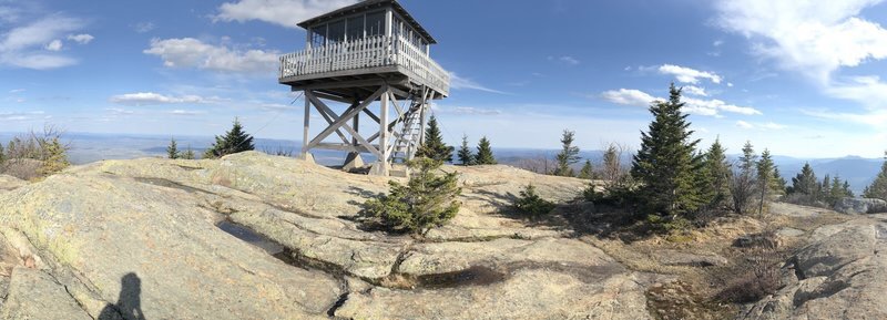 The Mt. Kearsarge trailhead is 1.4 mi east on Hurricane Mountain Road, turning off Route 16/302 on the northern edge of North Conway. It's three miles up to the fire tower (photo, right) and spectacular 360 degree views of the White Range and over into Maine. The trail passes through hardwoods, then pine forest, then gets steeper and slabbier as you approach the tree line. The entire last mile is very scenic as you cross broad Granite faces on the ridgetop. The fire tower was built in 1909 but updated in 1955. |