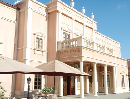 Tutto Italia Ristorante was renovated in 2012 but retains the same menu. Chefs and servers hail from Sardinia, Siciliy, Corsica and Italy. If you want Pizza or basic Pastas, go next door to Via Napoli for wider selection, but if you want the full range of authentic Italian cuisine this is your place. The bread basket contains a crisp, a yeast and a foccacia, all freshly baked and very good. The Antipasta Miso includes salumi, olives, cheese, dry cured ham, and other items. Their signature entrees are their Lobster Risotto (which is outstanding), Spaghetti & Veal Meatballs, and Braised Short Ribs With Mashed Potatoes, Gravy and Kale. The meat sauce here, which they use on their Lasagna and other entrees, is delicious. Their Steak is very tender --- you can cut it with a fork and not even use your knife --- and the Au Gratin Potatoes accompanying it are golden brown and very good. Gnocchi is a good indicator at Italian restaurants. It's extremely hard to pull off, tending to be dense, rubbery or soggy. The Gnocchi here is light and delicate and served immersed in cheese. We think their best dish is their Capesante a Cannellini (scallops, cannellini beans, pancetta rosemary and Tuscan olive oil). But the Risotto Alla Milanese Salsiccia (sweet italian sausage with arborio rice and saffron) and Filetto di Vitello al Limone (veal medallions, potatoes, capers in lemon butter sauce) are also outstanding. Save room for the Torta di Ricotta (lemon cheesecake w/ strawberries), Chocolate Gelato, Chocolate Tiramisu and Zabagione. Tutto has the second best wine cellar of any Disney restaurant. |