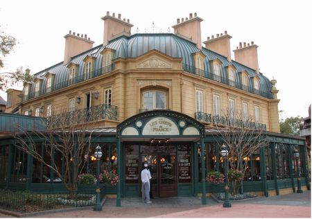 Le Chefs de France is the priciest of the Epcot restaurants but is exceptionally good. You might want to consider it for special occasions, perhaps your last night at Disney World. A brilliant touch is the animatronic rat Remy from the movie Ratatouille, who comes around and talks with guests. His repartee is inspired and as much a hit with adults as with kids. Trying to figure out how Remy can reply to what everyone says will be your main dinner conversation. Luckily, the food is as good as the rat. The loaf of French bread they bring is an early hint that this will be a fine meal. For appetizers, you should order a plate of Escargot (snails). You cannot eat in a French restaurant and not try Escargot. However, you must order the Lobster Bisque, Salmon Bisque or Onion Soup, all outstanding soups.This is the best wine cellar at Disney. The most famous entree is the Nutmeg Gratin de Macaroni, a French interpretation of Macaroni & Cheese. Longtime Disney visitors eat lunch here once each visit just for it. Their other signature items are the Seared Scallops in Lobster Broth With Gnocchi; Beef Short Ribs Braised in Cabarnet Wine With Pasta, Onions & Mushrooms; Grilled Tenderloin With Black Peppercorn Sauce, Potato Gratin & Green Beans; Rotisserie Chicken; and Roast Chicken With Potatoes & Tomatoes.The Quiche is simpler but still delicious. Desserts are Eclaires, Chocolate Mousse, Cream Puffs or Creme Brulee. Our only question is : Why is Ratatouille not on the menu ? |